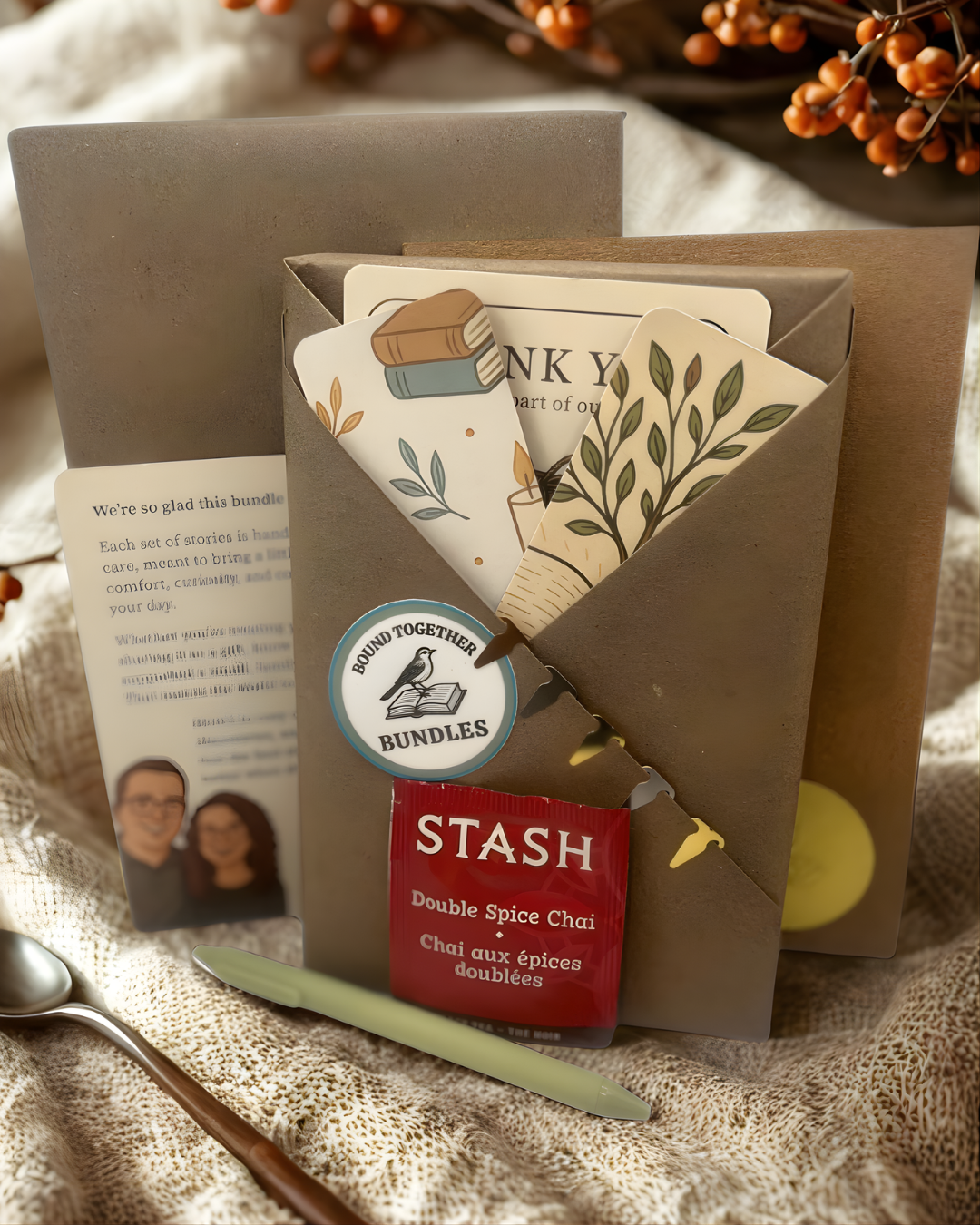 Celebrate the beauty of language and the power of storytelling. This bundle is designed for readers who delight in wordplay, myth, and the ways stories shape our lives. With two acclaimed novels, cozy extras, and a playlist to match, it’s a love letter to language itself.
